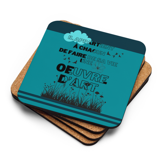 Sous-verres en liège "Il Appartient à Chacun de Faire de sa Vie une Œuvre d'Art"