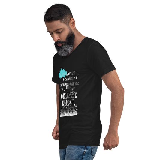 T-shirt Unisexe à Manches Courtes et Col V "Il Appartient à Chacun de Faire de sa Vie une Œuvre d'Art"